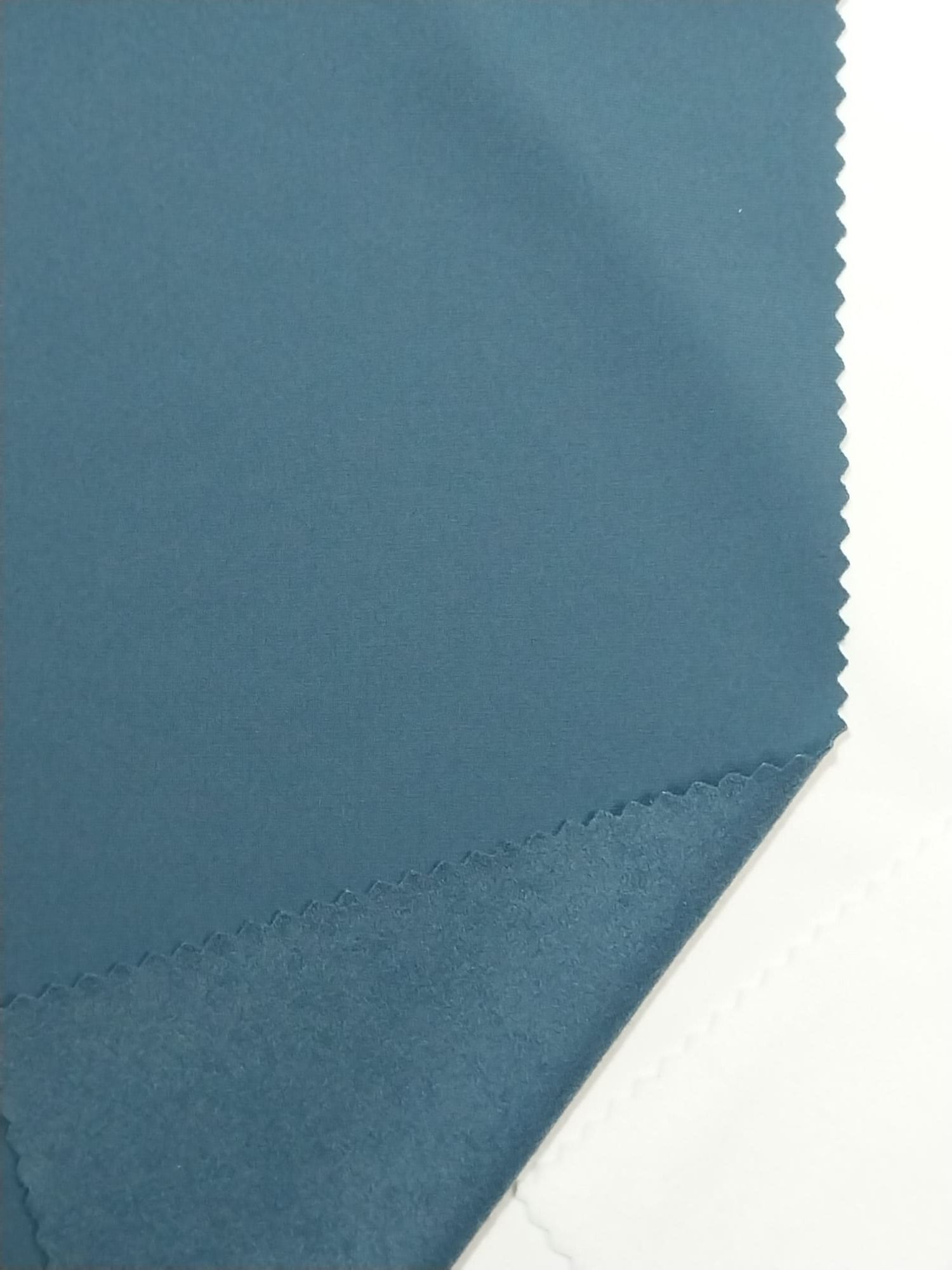 For the back side of this fabric, we brushed it. So it feels soft when you touch it, very comfortable against your skin. This brushing also helps to improve its thermal insulation, adding extra warmth. It has good stretch, strong, and soft.